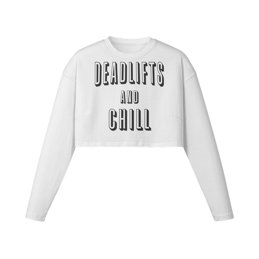 DEADLIFTS AND CHILL- Womens Long Sleeve Crop Top