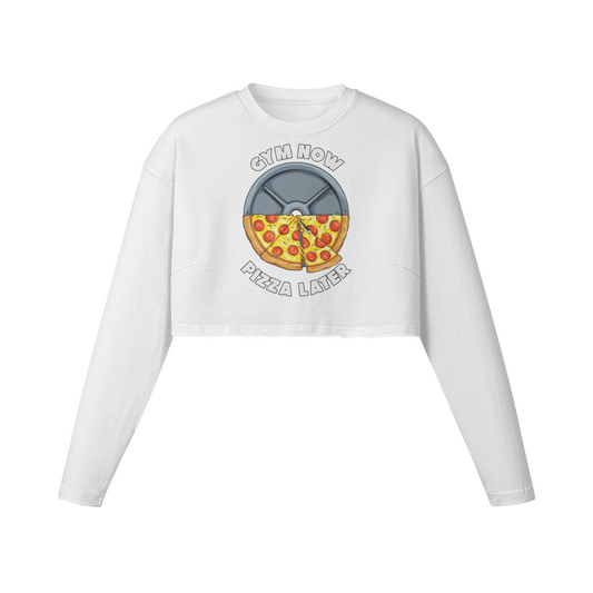 GYM NOW PIZZA LATER- Womens Long Sleeve Crop Top