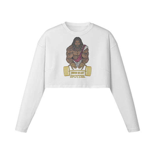 JESUS IS MY SPOTTER (DREADS)- Womens Long Sleeve Crop Top