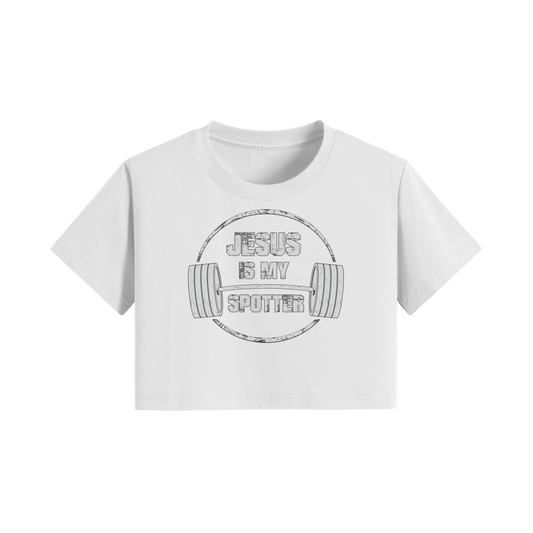 JESUS IS MY SPOTTER (TEXT)- Womens Crop Top