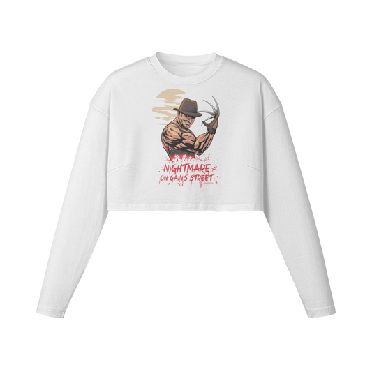 NIGHTMARE ON GAINS STREET- Womens Long Sleeve Crop Top